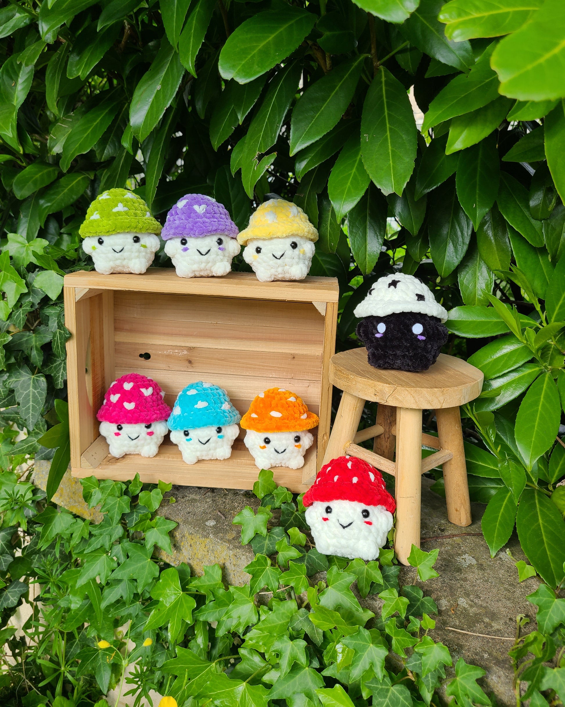 🍄 Champimignon est une peluche champignon au crochet (amigurumi) , réalisée à la main en France . Douce et moelleuse grâce à son fil polyester labellisé Oeko-Tex 🌿, elle ajoutera une touche fantaisie à votre déco ou à un cadeau fait main.