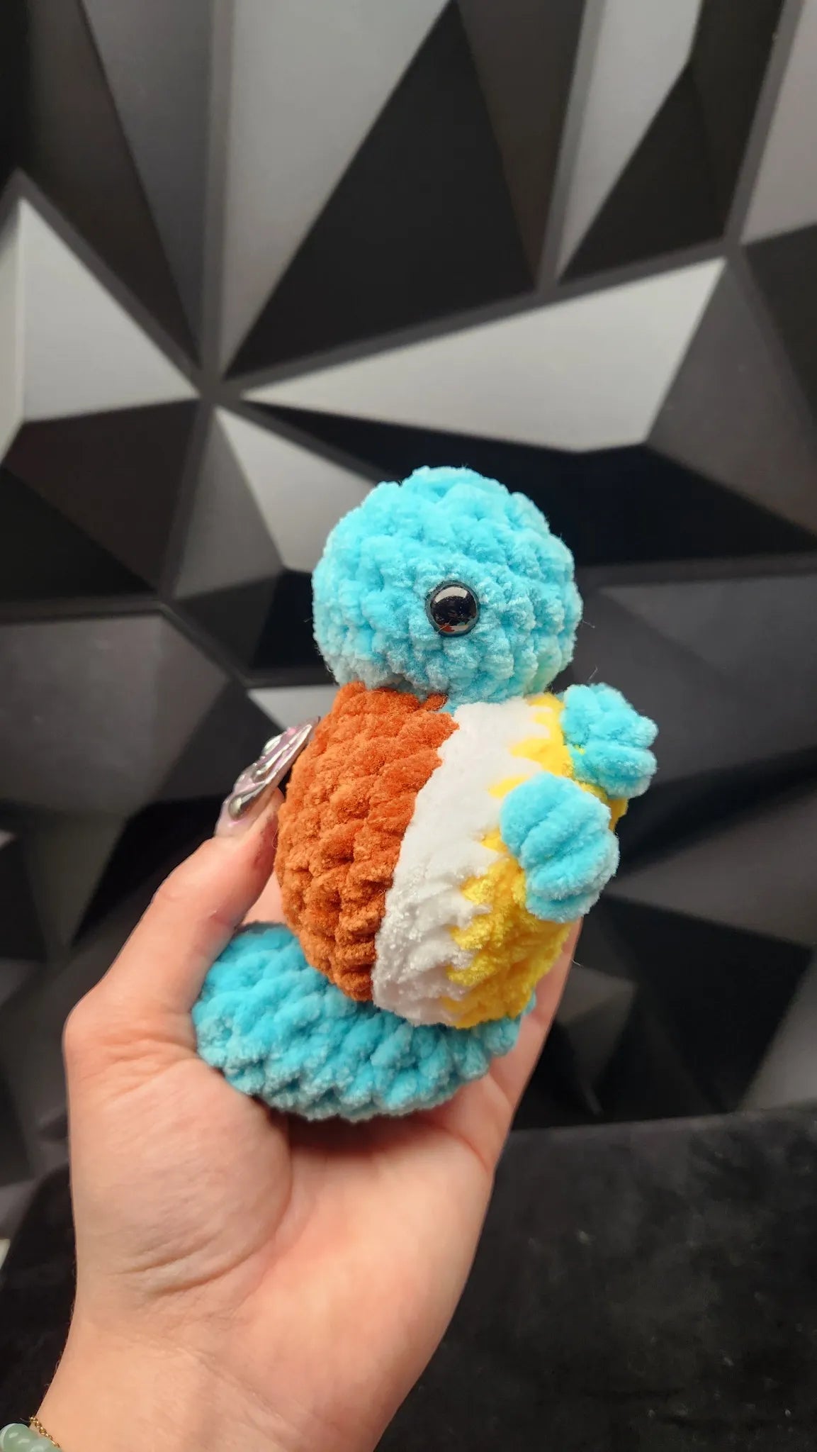 🐢 Carapuce , peluche craquante, colorée et pleine de douceur, cette adorable petite tortue en est entièrement réalisée à la main avec un fil ultra-moelleux type chenille. Son design attendrissant, ses couleurs vibrantes et sa bouille expressive en font un compagnon parfait pour petits et grands.