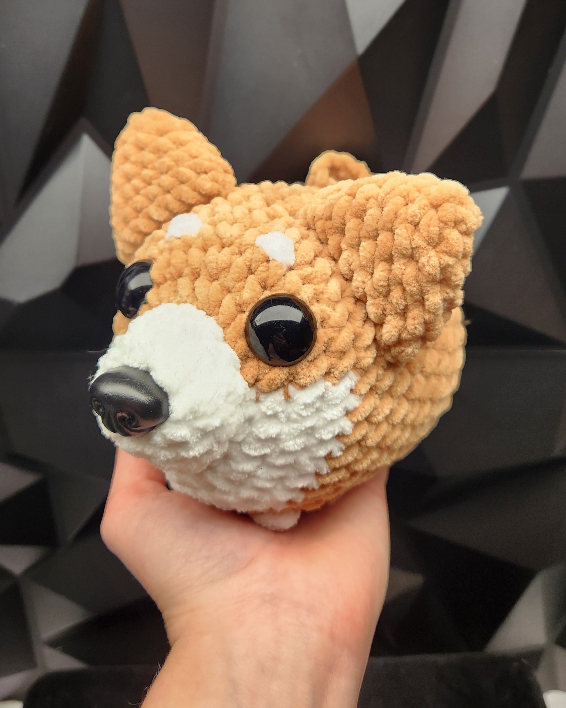 🐶 Voici un adorable Shiba Inu façon amigurumi : rond, moelleux et absolument craquant. Avec son museau blanc et ses grandes oreilles, il dégage une bouille trop mignonne qui fait fondre tout le monde.